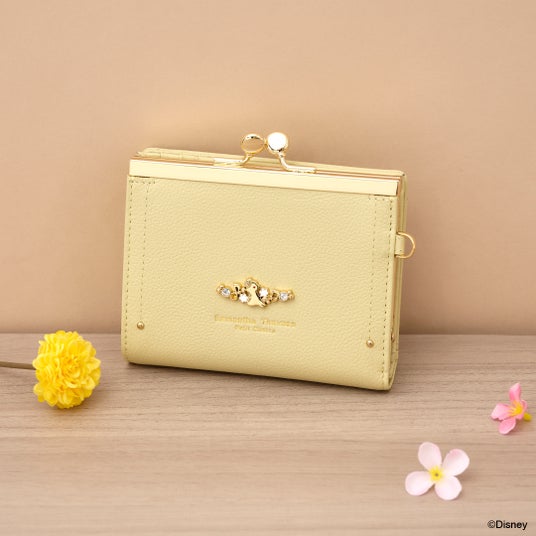 「クラリス」デザインの折財布は柔らかいイエローカラー。