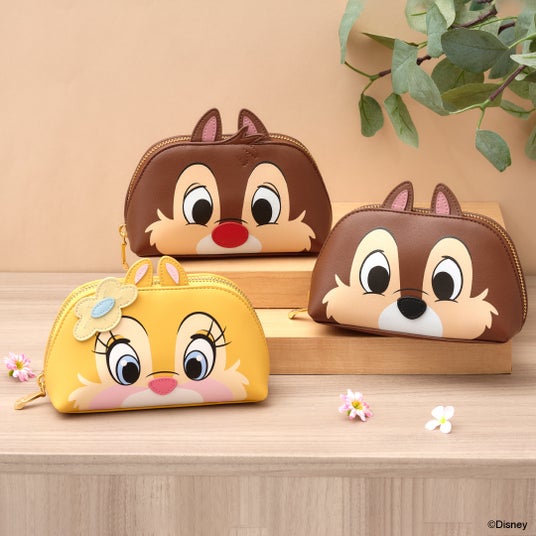 「チップ」と「デール」と「クラリス」の顔をポーチで表現した、愛らしさが詰まったアイテム。「チップ」と「デール」ポーチの背面に尻尾のデザインもたまらないポイント♪