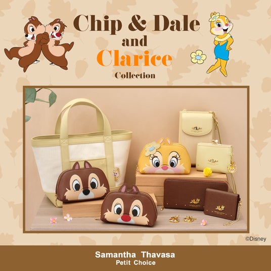 株式会社サマンサタバサジャパンリミテッド(代表取締役社長:古屋 幸二、所在地:東京都港区)は、『Samantha Thavasa Petit Choice(サマンサタバサプチチョイス)』からディズニーキャラクターの「チップ&デール」コレクションが登場。公式オンラインショップ・一部店舗限定の「クラリス」アイテムも発売。いつも仲良しな「チップ」と「デール」に、彼らの憧れのマドンナ「クラリス」が加わった、お財布、スマホショルダー、トートバッグなど、普段使いにピッタリなアイテムがラインナップ。