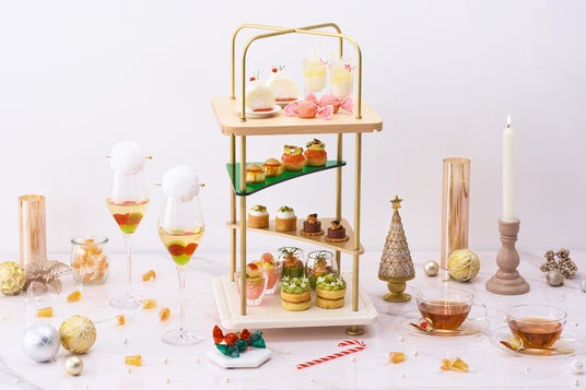 「なにわラグジュアリー」を体感できる「街ナカ」ホテル「OMO7大阪(おも) by 星野リゾート」は、2024年11月15日から12月25日まで、なにわマダムの必須アイテムのあめちゃんをテーマにした「あめちゃんクリスマスアフタヌーンティー」を提供します。水飴や金平糖、オパリーヌ(*1)といった様々な形の飴を使用したものや、あめちゃんの形に見立てたものなど全10種類のクリスマススイーツとセイボリーを楽しめます。また、アフタヌーンティーのはじめには、真ん丸なキャンディに見立てた氷と綿飴で彩ったウェルカムドリンク「あめちゃんスパークリング」を提供。クリスマス気分を味わいながら、あらゆるところに散りばめられた飴の要素に会話が弾むアフタヌーンティーです。