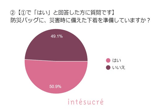 しかし、下着を準備していない方は49.1%おり、防災バッグ自体を用意していない方も含めると、全体の70.5%が下着の備えをしていないことがわかりました。
