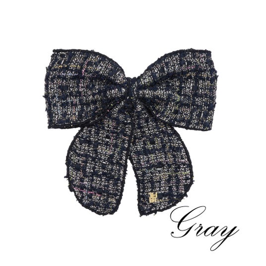 ツイード コレクションVol-1は、甘すぎないデザインを目指し、大きさやテールの長さ、エッジのほつれ感にこだわり、メタルエンブレムを高級感のアクセントに取り入れました。柔らかな風合いと多彩なカラーの糸を用いた複雑な織りが特徴のリントンツイード生地のヘアアクセサリーは、この秋のファッションのアクセントにぴったりです。