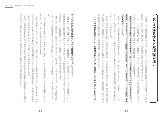 専門的知識・経験を元にした体系的な記載と、ご自身の双極症体験という個人的な記述とが見事に融合して、今までにない書物になっていると思います。
