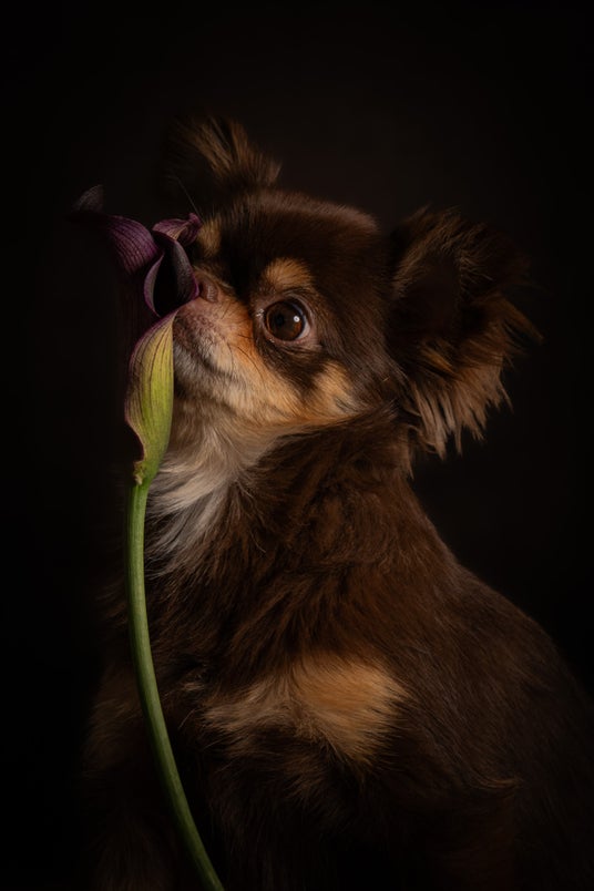 「絵画のように飾れるアート写真」を目指し、フラワーアーティストである妻とフォトグラファーの夫により開発されたこのプロジェクトは、今まで着目されてこなかった花と犬の相性にフォーカスします。