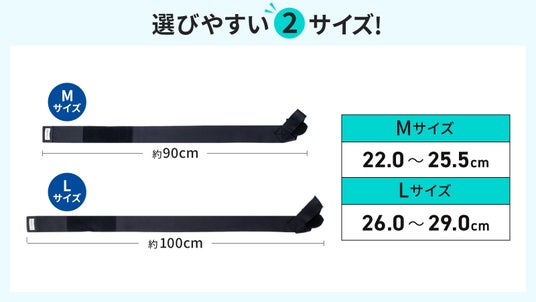 片方の足だけでなく、両方の足首と足裏を同時にサポートできる左右1セットなので、バランスの取れた歩行や走行が可能になります。また、MとLの2サイズ展開なので、足首の太さにかかわらず簡単にお選びいただけます。