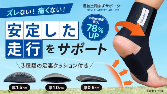 足首と土踏まずクッションのWサポートで安定した走行を実現するサポーター『STYLE ARTIST ADJUST』