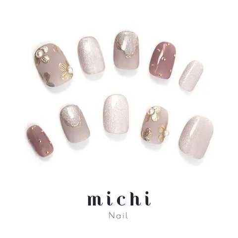 グレージュとピンクブラウンのこなれカラーに、ゴールドのフラワーをアートしました。