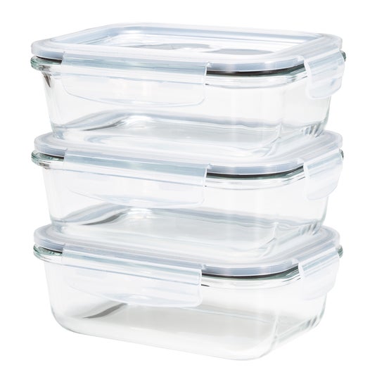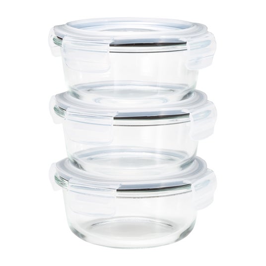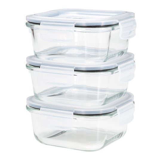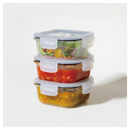 4点ロックでしっかり密閉保存が出来る「atomico 耐熱ガラス保存容器3P」