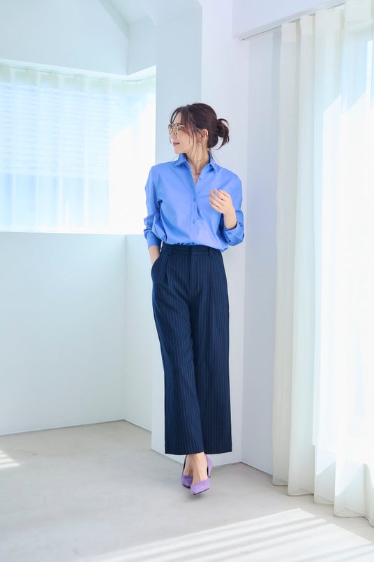 上下セットアップで揃える必要はないので、デイリー仕様でもきれいめアイテムならOK!