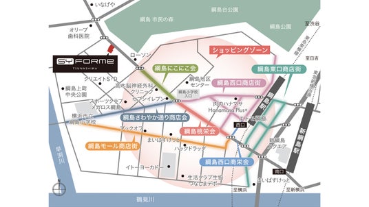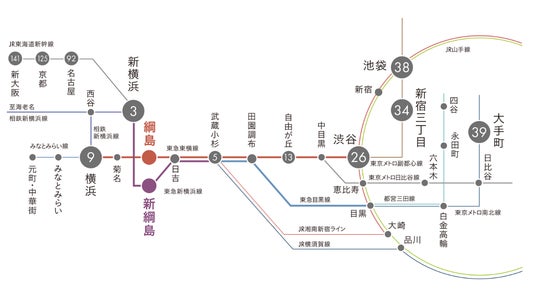 新駅「新綱島」駅の誕生により、綱島エリアのさらなる発展が期待される中、「SYFORME TSUNASHIMA」は駅から徒歩圏内という利便性の高さを誇ります。綱島駅周辺にはショッピングセンターや商店街が広がり、生活に必要な利便施設が揃っています。また、横浜までわずか9分、渋谷へも直通26分、新横浜線利用で大手町へも39分でアクセス可能と、都心への交通も非常に便利です。