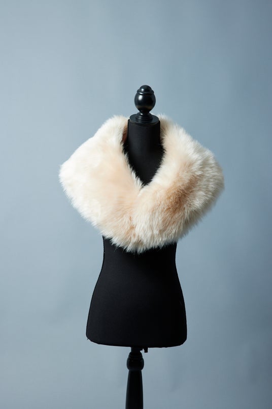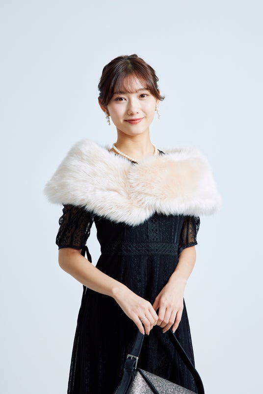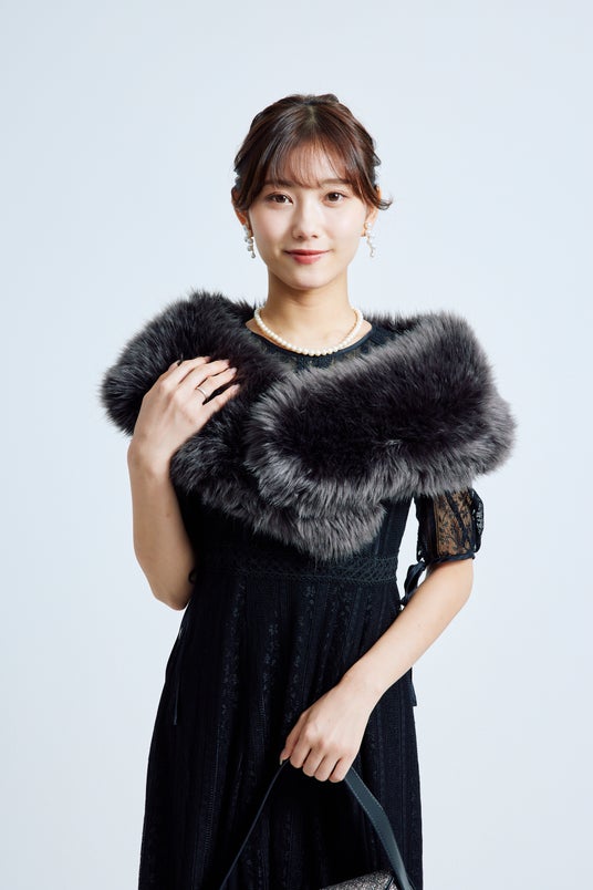 ショールのデザインは、振袖を引き立てるために実用性と美しさを兼ね備えています。お気に入りの帯や帯留めが映えるように、やや短めのデザインを採用し、何度も試作を重ねることで毛皮のショールのふんわりとしたボリューム感を忠実に再現しました。
