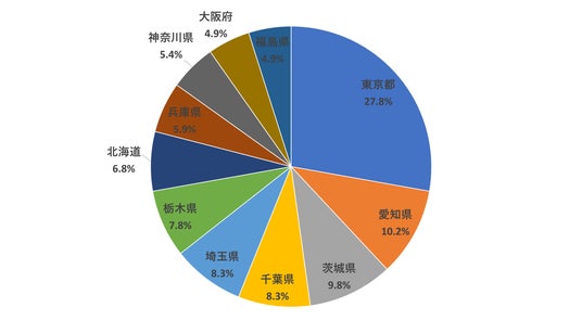 東京都が3割近くを占める