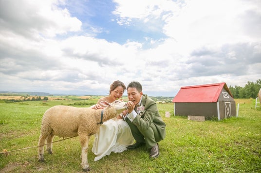 美瑛の千代田ファームでは羊と一緒に撮影ができる広大な牧場。