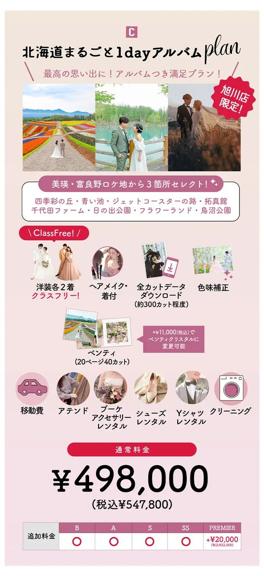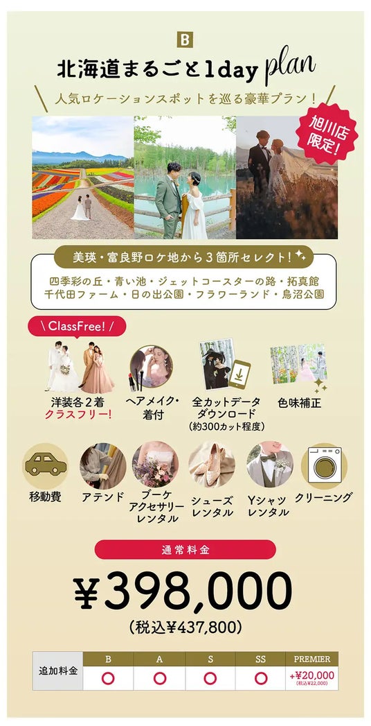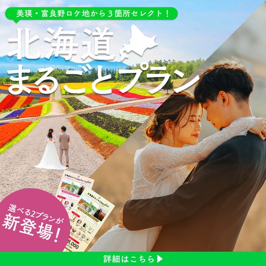 写真工房ぱれっとのフォトウエディングにて”北海道まるごと1dayプラン”が新登場。北海道旅行も兼ねて思う存分体験と写真を楽しめる、大満喫プランです。