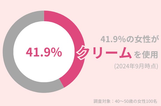 調査の結果、40代女性のうち、41.9%と半分近くの方がスキンケアでクリームを使用していることがわかりました。クリームの魅力は、水分を肌にとどめておくキープ力です。一方で、肌に水分を与えることはできないので、化粧水やローションなどで水分を補給してから使用しましょう。