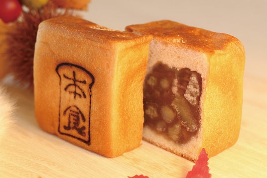栗の粒が入った栗餡を高級食パン本食の生地で包み、小さいキューブ型にした季節限定の栗あんぱん。