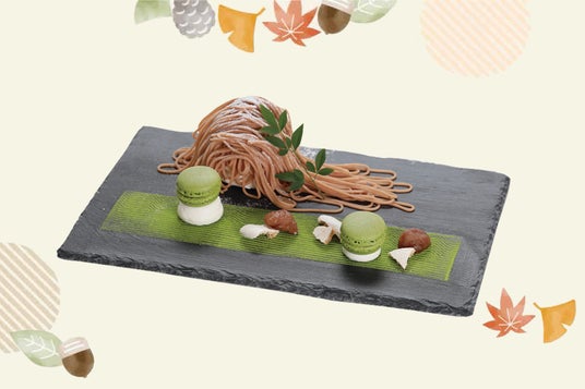 国産和栗を贅沢に使ったモンブランを、枯山水の庭風情に配したプレート。