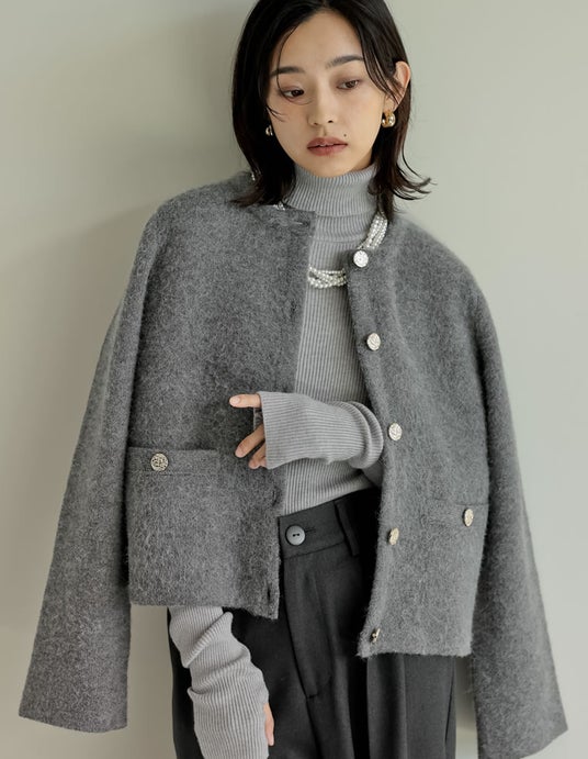 商品名:起毛ニットゴールドボタンショートカーディガン