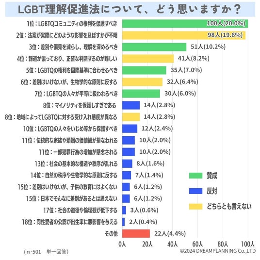 ★ 1位:LGBTQコミュニティの権利を保護すべき 100/501名(20.0%) ★