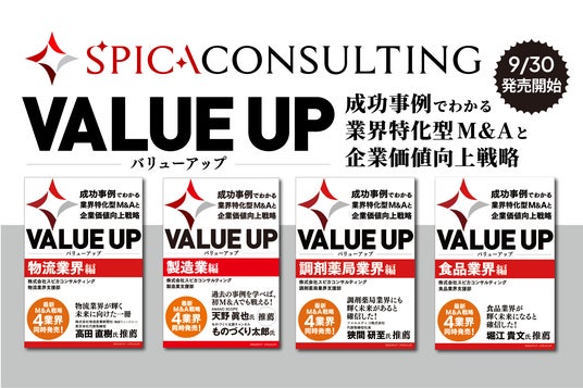 企業価値を最大化する「バリューアップコンサルティング」と「業界特化型M&A」を提供する株式会社スピカコンサルティング(本社:東京都港区、代表取締役:中原 駿男、以下「当社」)は、2024年9月30日に書籍『VALUE UP 成功事例でわかる業界特化型M&Aと企業価値向上戦略』シリーズ4冊を同時刊行します。本シリーズでは、成長戦略の手段として経営者が知っておきたい「最新の業界動向」「業界別のM&A事例」「業界の未来予測」などを「物流」「製造」「調剤薬局」「食品」の各業界でトップクラスのM&A支援実績を有するコンサルタントが解説。企業価値を向上させ、成長戦略としてのM&Aを成功に導く秘訣が満載です。また、この度の書籍の発刊を記念し、東京・大阪・名古屋・福岡にて書籍発刊記念セミナー「企業の価値を効果的に高める方法とは?成功企業から学ぶ『バリューアップ経営』のすゝめ」を開催します。
