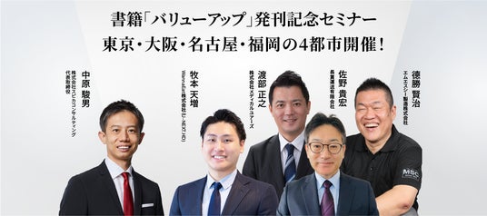 書籍の発刊を記念し、「企業の価値を効果的に高める方法とは?成功企業から学ぶ『バリューアップ経営』のすゝめ」を書籍発刊記念セミナーとして東京・大阪・名古屋・福岡の4都市で開催します。
