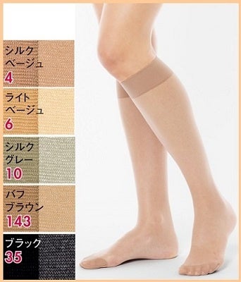 履き口の締め付けが気になるショートストッキングは、ふくらはぎ周りのサイズに応じて4サイズから選べるこちらの商品がオススメです。つま先メッシュ補強で丈夫さもプラス!