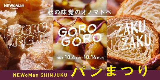 今年度で8回目の開催を迎える「NEWoMan新宿パン祭り」は、人気のベーカリーショップのパンをお楽しみいただけるイベントです。17店舗のパンが集結する今年は「秋の味覚のオノマトペ」をテーマに、「もちゅもちゅ」・「ゴロゴロ」・「ザクザク」の3つの食感ごとに期間を分けて展開されます。