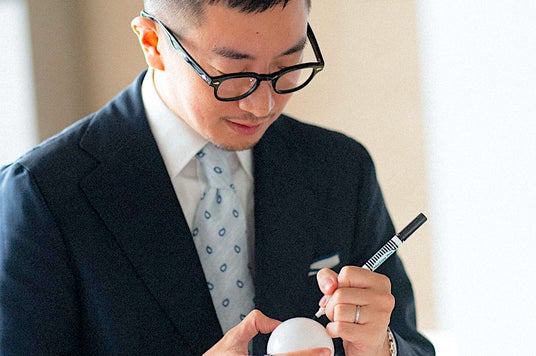 SAKE HUNDRED台湾ローンチイベントで来場者に求められ、記念品にサインするブランドオーナー 生駒