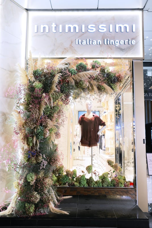 イベント会場当日は、バイオリニストの素敵な演奏が響き渡り、華やかな雰囲気に包まれました。店内とウィンドウには、オープンを記念して、インティミッシミを代表する「Pretty Flowers Collection」をイメージした色鮮やかな花々が10月3日(木)までディスプレイされます。