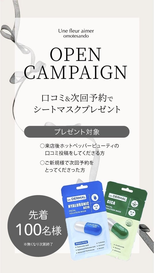 先着100名様に口コミ&次回予約で”シートマスク”プレゼント♪(無くなり次第終了)