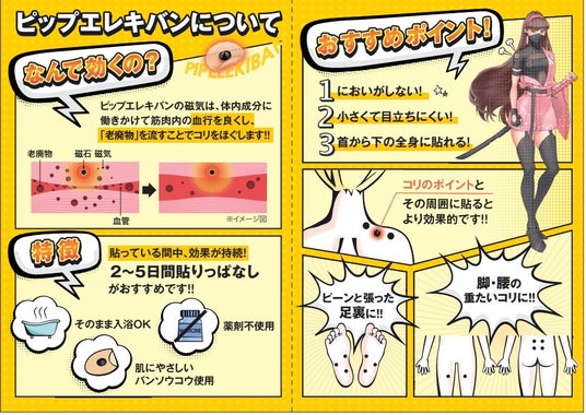 「ピップエレキバン」は、ヤエチカ(東京駅)に店舗を構える10分整体サービス「CHARGE」のお店を期間限定でピップエレキバンデザインに変え、「ピップエレキバン」をコラボ特別パッケージでサンプリングします。