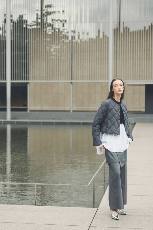 ブランドが掲げる“フェミニンモード×機能性”が体現されたモダンなショート丈ジャケットと