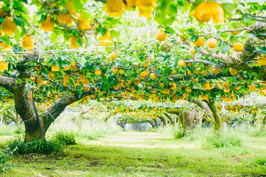 昔の人の背丈に合わせて低めに育てられた梨の果樹