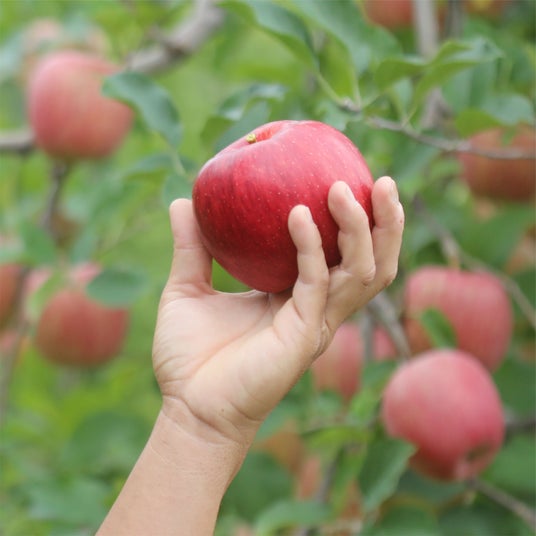 ◎ 青森県産の最高級りんご。最良のアップルブランデーづくりには、もちろん原料となる最良のりんごが欠かせません。
