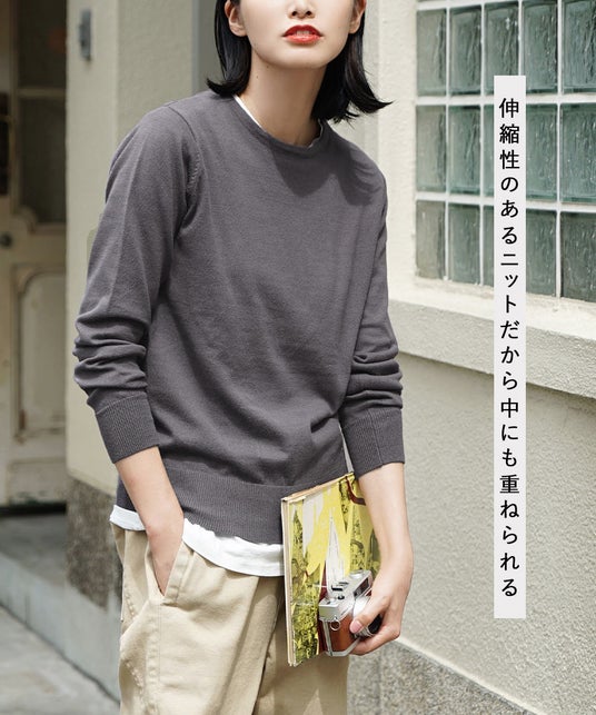 シンプルなデザインでコーディネートに幅が広がるクルーネック。上品な詰まり具合で、どんなシーンでも使いやすくなっています。