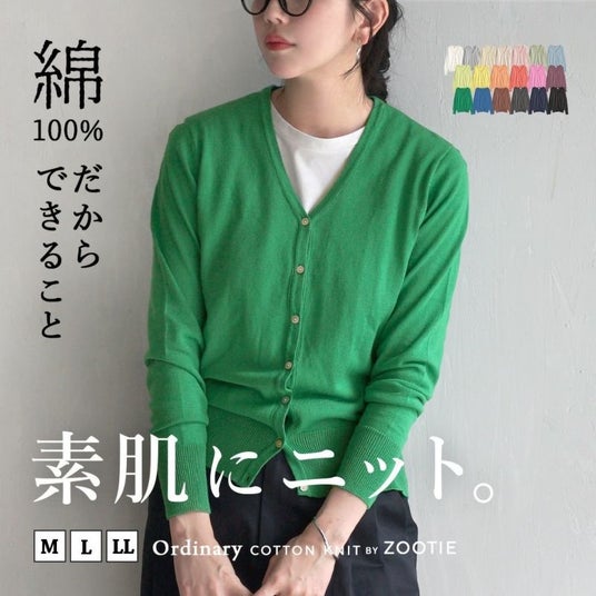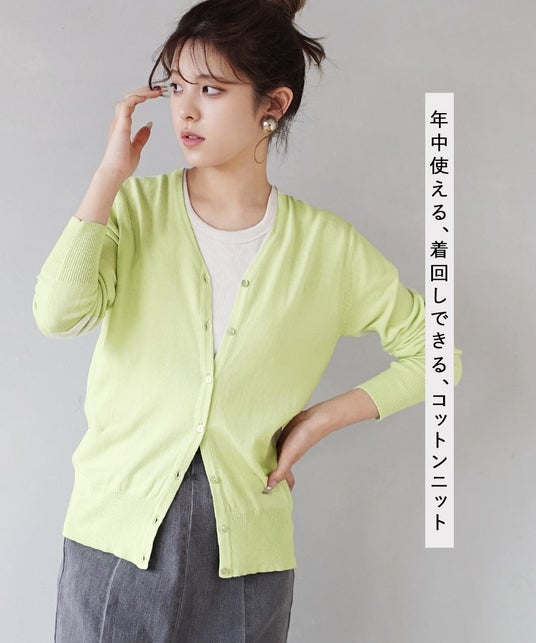 年中使える、着回しできる使い勝手の良さを目指しました(カーディガン[Vネック]ライムグリーン着用)