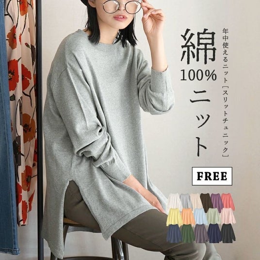 オーディナリー コットンニット セーター[スリットチュニック]¥3,990
