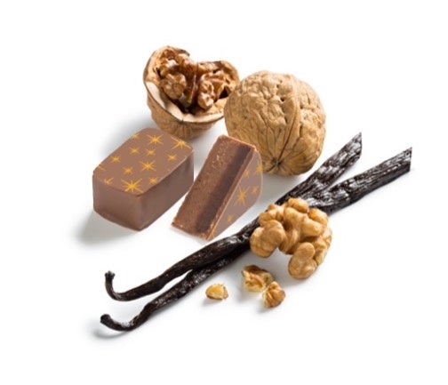 これまでにココナッツやカシューナッツ、ピーカンナッツなど様々なナッツが登場し、まだ扱っていないクルミが次の候補に挙がります。キャラメリゼしたアーモンドのプラリネとクルミのペーストに、マダガスカル産バニラ入りのダークガナッシュが甘みを添える味わいに、クルミ特有の渋味のことは忘れて満喫いただけます。2層仕立てで、プラリネの粒感のあるテクスチャーがミルキーなチョコレートのバニラの風味を引き立てます。最大限に魅力を表現されたクルミは、やみつきになる美味しさで、これまで扱っていない素材使いの特別感がクリスマスにぴったりです。