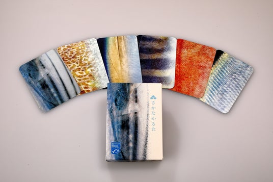 「さかなかるた」は魚の表皮(模様や色)のみで何の魚かを当てるかるたで、ウロコの凹凸感を特殊な印刷技術で再現しています。「MSCオリジナルさかなかるた」は、「さかなかるた」をアレンジし、主にMSC認証の魚種で制作したものです。