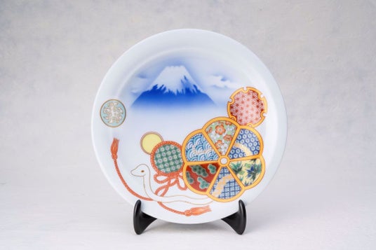 深川製磁『巳』富士に黄金蛇吉祥紋 縁起皿箔のおせちの醍醐味!創業130年を迎えた有田焼の窯元・深川製磁の縁起皿。