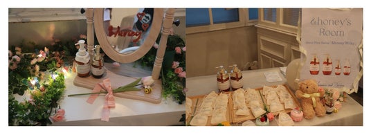 (左:Sucleの世界観を表現したフォトブース / 右:「&honey Milky」の香りが楽しめるブース)