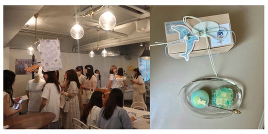 今回のイベントでは複数の体験ブースをご用意しており、中には渋谷で人気の和菓子屋カフェ「かんたんなゆめ」とのスペシャルコラボブースも設置いたしました。水引や夏らしいクリアパーツを使って、自分だけの和菓子ボックス作りが体験できる企画となっており、若年層の和菓子離れが進む中でも、トレンドであるものづくり体験と和菓子を掛け合わせた本ブースは多くのお客さまに楽しんでいただき、盛り上がりを見せました。