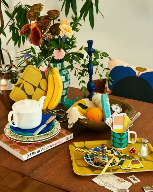 オーラ カイリーは夫のダーモットと共に Orla Kiely を設立し、現在では世界的に知られたファッション及びライフスタイルブランドです。アイコニックなステムリーフプリントが人気を博し、ノスタルジックでいて、喜びに満ちた豊富なテキスタイルパターンを展開。そのひとつひとつが色鮮やかなインスピレーションを与えてくれる、オーラの魅力に満ちています。