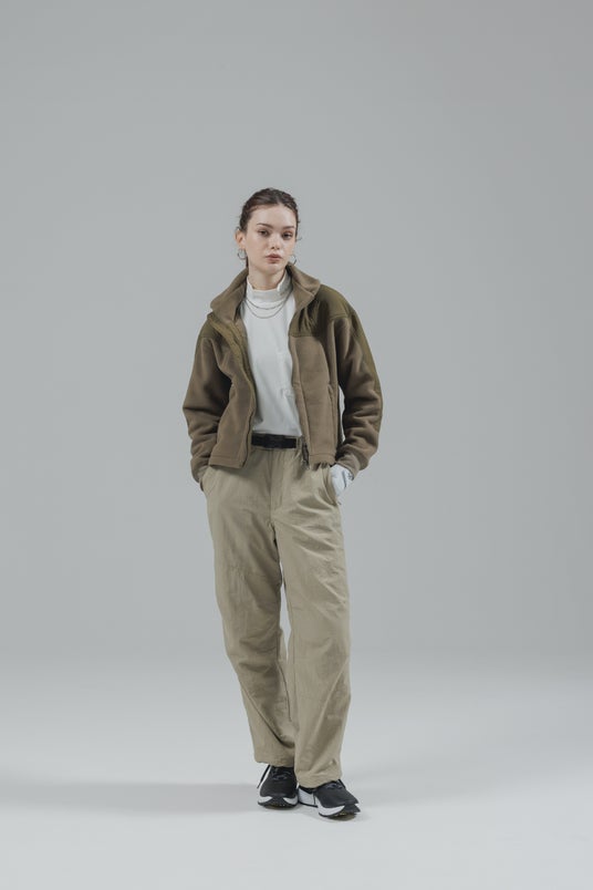 新作のフリースジャケットとアノラックパンツはBLACKとKHAKIの2色展開