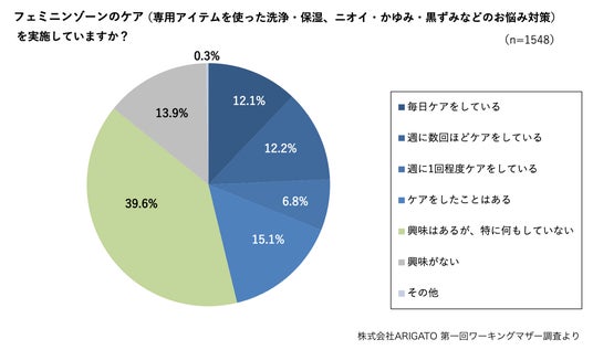 ■3割弱がフェミニンゾーンケアを定期的に実施、一方で「興味はあるが特に何もしていない」は最多の39.6%