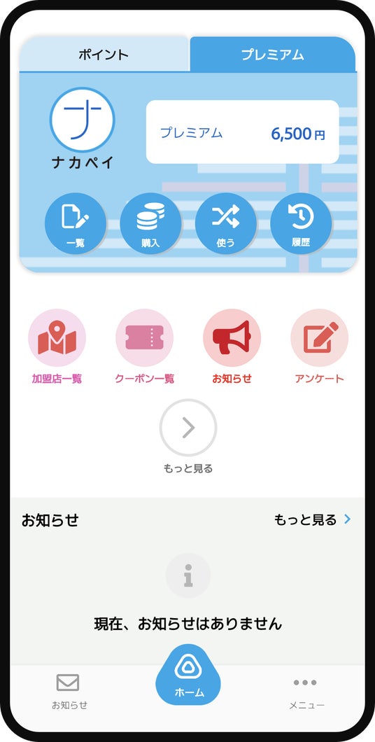 当アプリは、当社が展開するリージョナルスーパーアプリ(R)(RSA)として開発しており、地域通貨機能の他に、お知らせ配信機能、アンケート機能など、さまざまな機能も搭載しています。