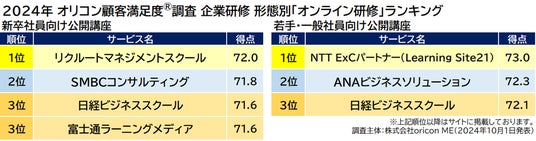 企業研修 形態別「オンライン研修」ランキング(2024年 オリコン顧客満足度(R)調査)
