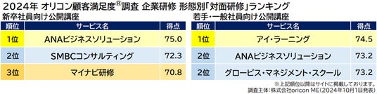 企業研修 形態別「対面研修」ランキング(2024年 オリコン顧客満足度(R)調査)