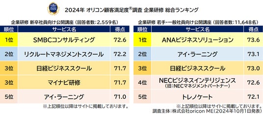 『企業研修』総合ランキング TOP5(2024年 オリコン顧客満足度(R)調査)