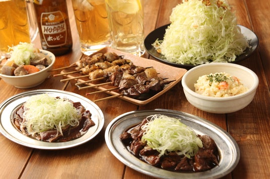 ◆芝浦市場から毎日直送している鮮度抜群の豚モツや鶏肉などを食べやすい串炭火焼スタイルで提供しています。